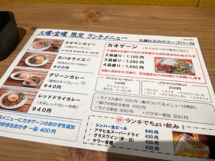 個人的にはカオゲーンを選ぶのが楽しく、とても美味しかったので、また火曜、金曜を狙って伺いたいです。