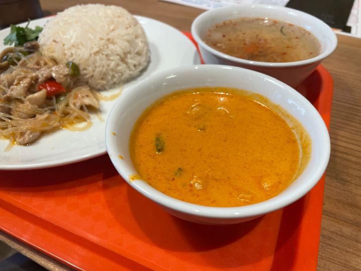 火曜、金曜はおかずを選べるカオゲーンが楽しみではありますが、カオマンガイやグリーンカレーなど通常のメニューも注文できます。