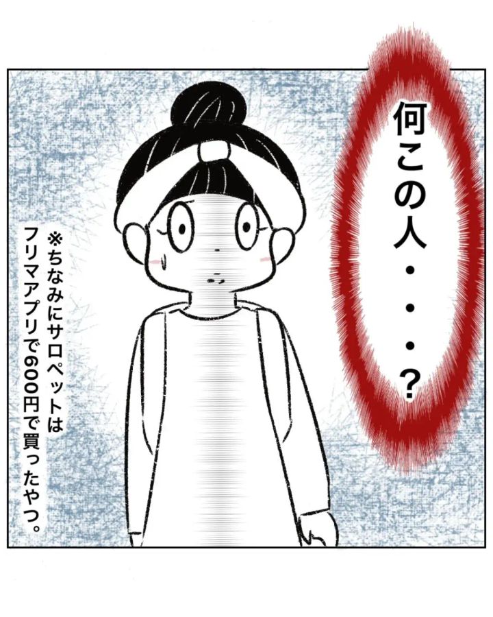 他人の子の靴や服がどこのブランドのどんなものでいくらなのかまで詳細に調べていて、それを悪びれもせず本人に話してくるゆかちゃんママ。まるさんは「何この人・・?」とゾッとしました。ちなみに、ゆかちゃんママが「レアだし高いですよね?」と言っていたアキくんのサロペットは、まるさんがフリマアプリで600円で買ったものでした。