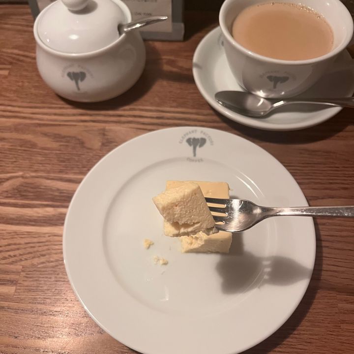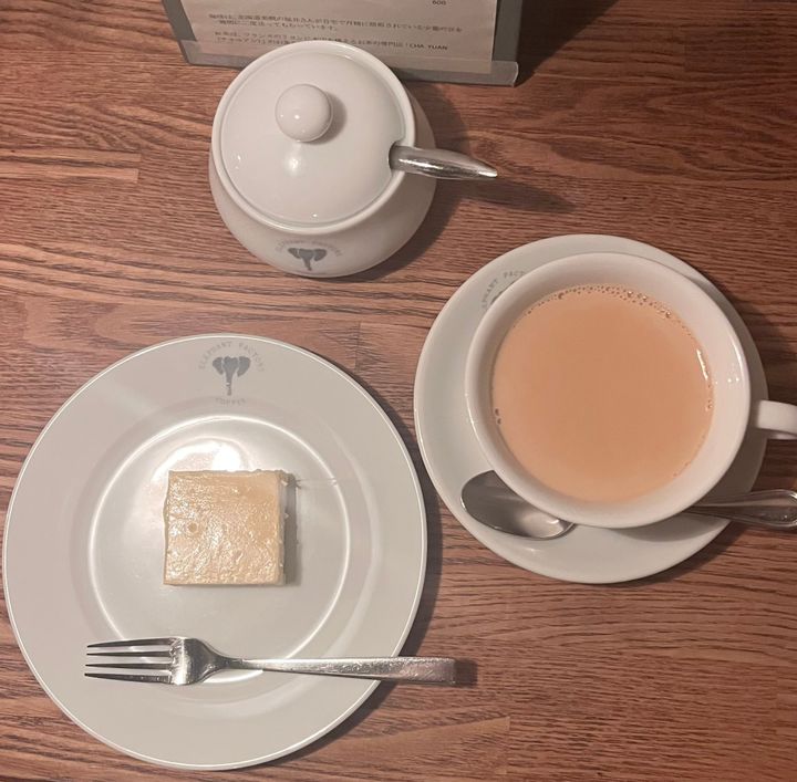 ホットドリンクとスイーツのプレートにはお店の看板でもあるエレファントマークが。