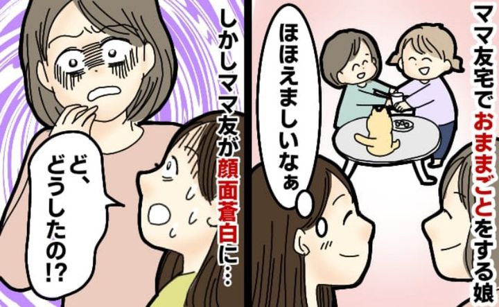 2歳の娘を連れて、ママ友の家に遊びに行ったときの話です。娘たちは楽しく遊んでいたのですが、娘のあるひと言を聞いたママ友は顔面蒼白に……。