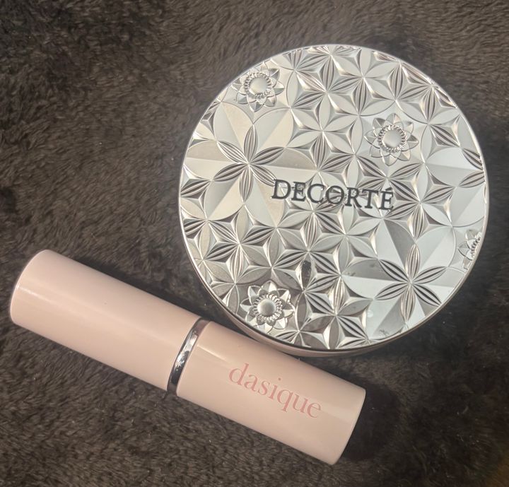 dasiqueのルミナスグロースティック02番シャンパンとコスメデコルテのルースパウダー01番crystal translucentが最近のお気に入りです。