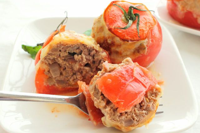 食べてみると、温かいトマトがとってもジューシー!さっぱりとしたトマトスープに入っているミートボールを食べたかのような気分。肉だねは、思っていたよりもさっぱり。赤ワインとトマトの果肉を加えて煮詰めた味付けひき肉のおかげで、旨味があってふんわりとジューシーなおいしさです♪