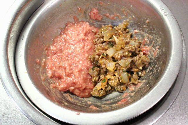 生のひき肉と味付けひき肉を同量混ぜ合わせるのが、ポイントなんですね!