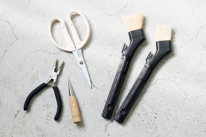 藤を切るはさみや編み目を整える千枚通しとニッパーも必需品。