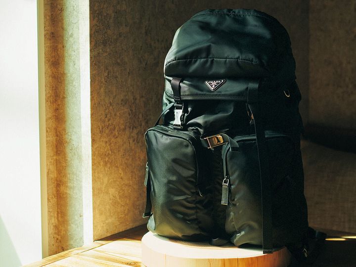 3. 【プラダ】のバックパックが人気再燃中!Re-Nylon素材で魅せる大人の男のサステナブルな装い