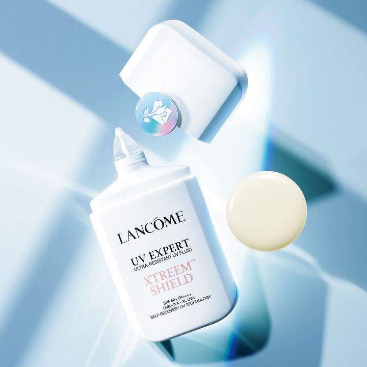 磁石のように引きあう力に着目したUVフィルム復元テクノロジーを搭載。日焼け止め効果に加え、つけ心地、毛穴や美白のスキンケア効果、クレンジング要らず、洗顔料で落とせる手軽さを兼ね備える。ランコムが40年間研究し続ける「エクスポソーム研究」(人が生涯にわたって受ける環境からの身体的影響、特に光老化に関しては紫外線だけに留まらず水や空気に含まれる汚染物質などの複合的な影響を研究している)の積み重ねが体現した製品。UV エクスペール エクストリーム シールド SPF50+・PA++++、UV耐水性★★ 50ml ¥12,980(ランコム)