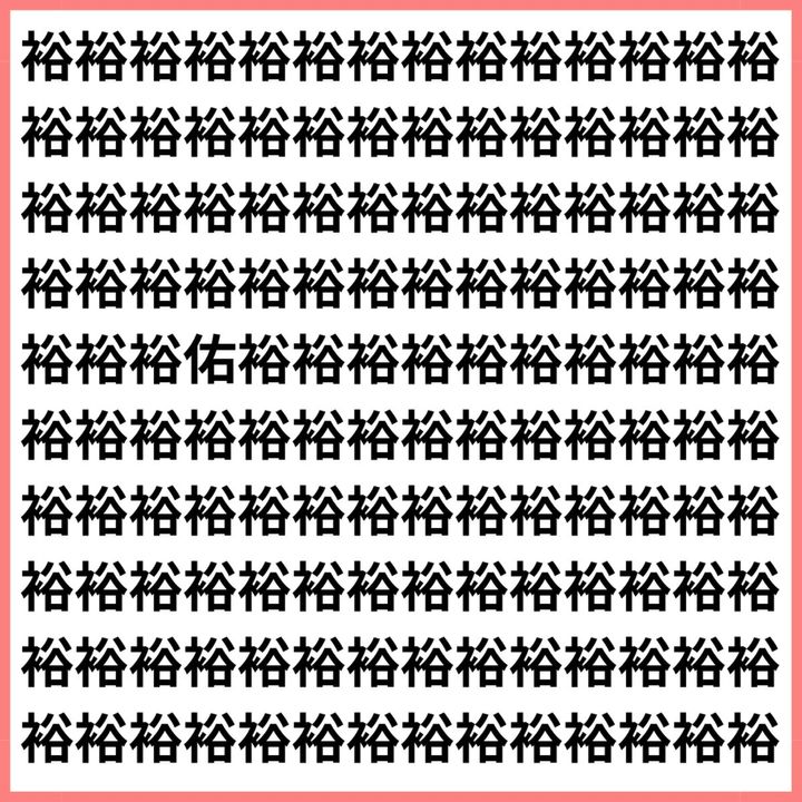 たくさんの「裕」の中に、1文字だけ違う漢字が混ざっています。