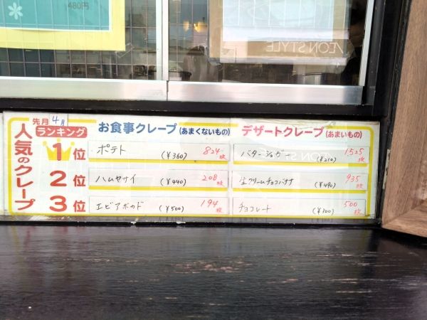 ちなみに、デザートクレープの人気ナンバー1は「バターシュガー」で、こちらは210円とさらにリーズナブルです!