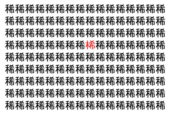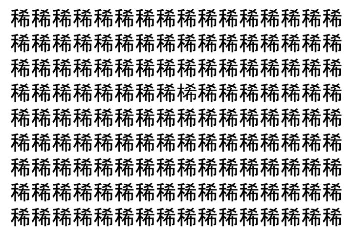 2. 【脳トレ】「稀」の中に紛れて1つ違う文字がある!?あなたは何秒で探し出せるかな??【違う文字を探せ!】