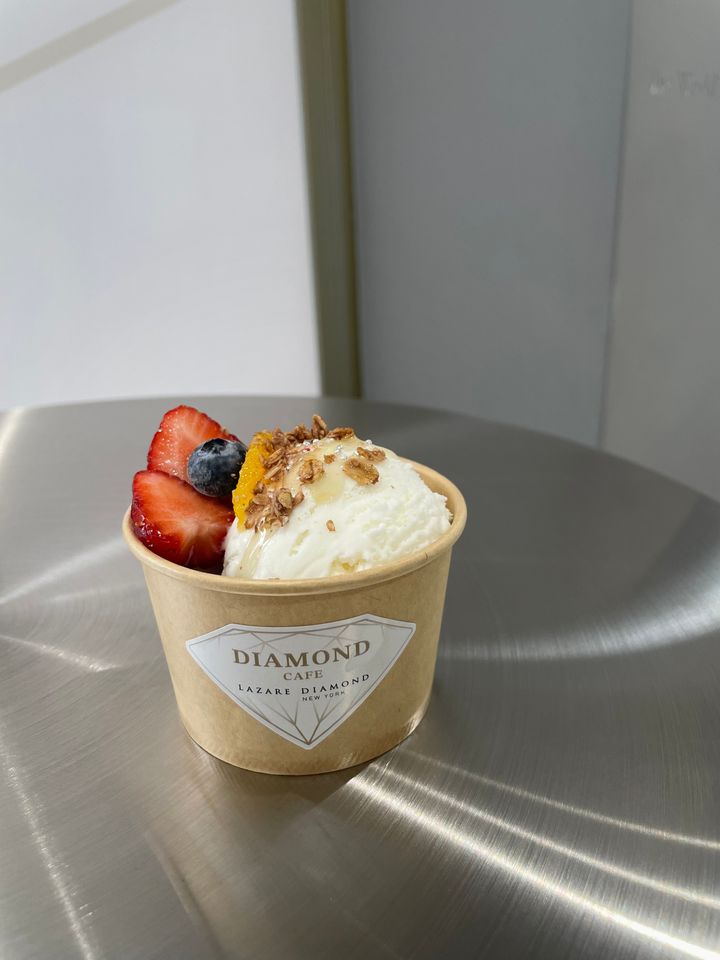 “The World's Most Beautiful Diamond®”ラザール ダイヤモンドが手掛けるこのカフェは、「世界で一番」の称号を持つ様々なアイテムが飾られています。