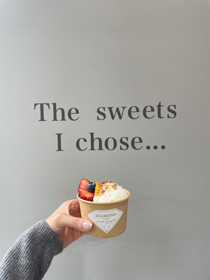 私の診断に合わせたトッピングはストロベリー、オレンジ、ブルーベリーでした。シロップは3種類(キャラメル・チョコレート・はちみつ)から選べます。アイスヨーグルトにヘルシースイーツ、はちみつの組み合わせが美味しかったです✨