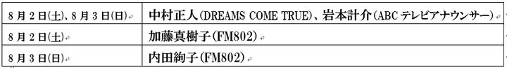 このご縁もあり、中村正人(DREAMS COME TRUE)と岩本計介(ABCテレビアナウンサー)が『ドリカムと夏祭り2025』のMCを務めることが決定。イベント当日は、ドリカムと「おは朝ダンス企画」のコラボが再び実現します。他にも、ドリカムをはじめとする豪華アーティストのライヴパフォーマンスや花火の打ち上げなども実施します。