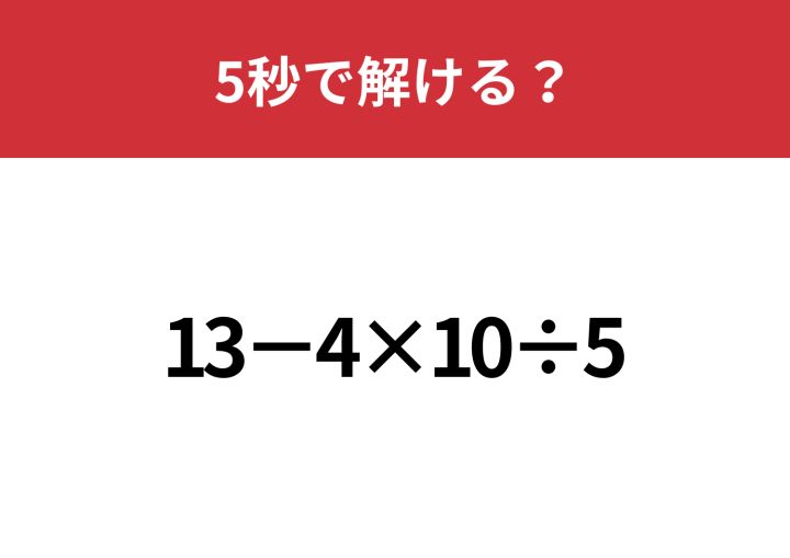 大人なら間違えずに計算できるはず?「13−4×10÷5」5秒で解ける?