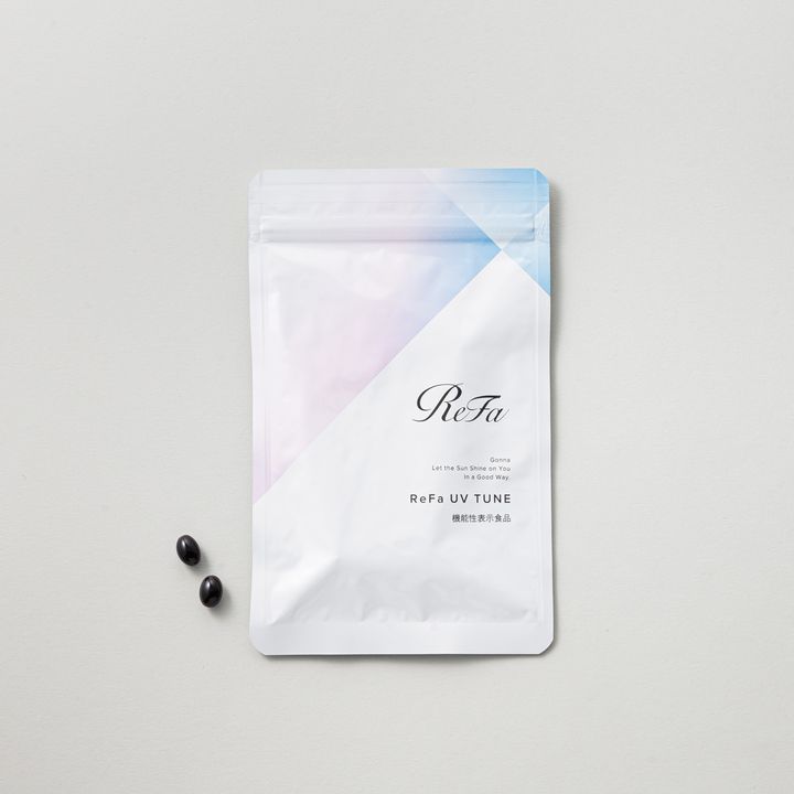 日焼け止めの落とし穴“UVリーク”に着目したサプリメント。肌の溝部分のすき間などは日焼け止めの塗りムラは免れないもの。そんな隙間から入り込む紫外線が引き起こすダメージを体の内側からケア。GABA配合で肌の弾力を生み出す効果も期待。リファUVチューン 30日分(60粒入り) 3,456円/MTG