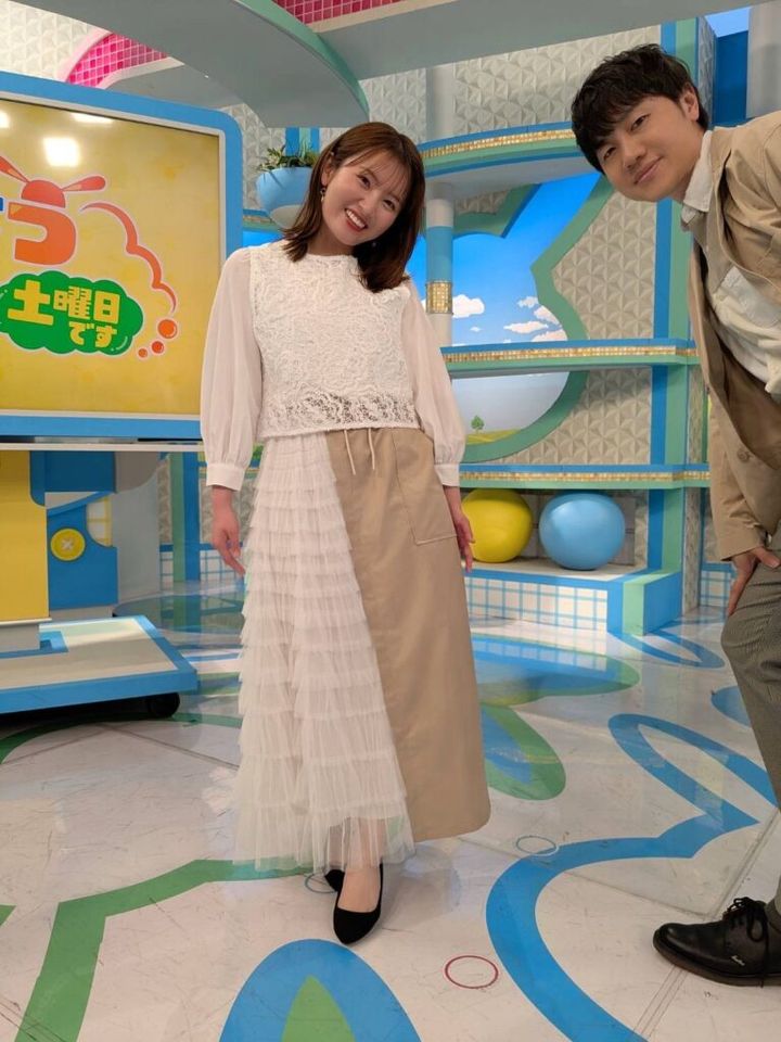 この日は、偶然同じベージュコーデだった北村アナが一緒に写ってくれました♪