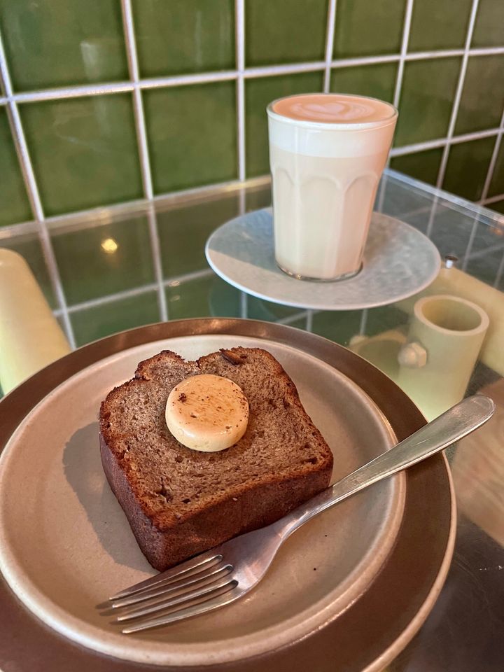 ABOUT LIFE COFFEE BREWERSのバナナブレッドにはエスプレッソバターが乗っているのが特徴です。