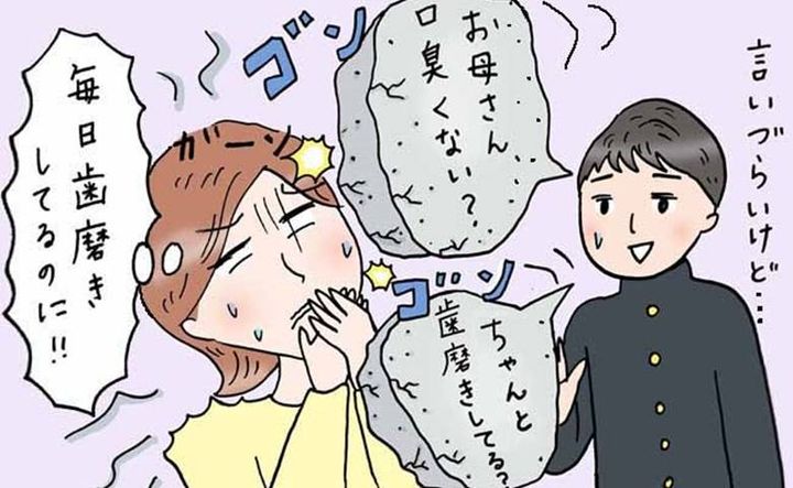 ところがある日、息子が申し訳なさそうに私に言ったのです。「あのさぁ……お母さん口臭くない? 歯磨きしてる?」と。思いも寄らない指摘に、私は大ショック! 思わず口元を手で覆ってしまいました。