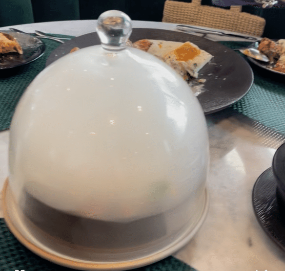 大人女子のハートを射止めるのは、スモークド・スフレ・パンケーキ。そう、燻製のパンケーキなんです。燻製のスモークに満ちたドーム型のガラスケースの入った状態で運ばれてきて、テーブルでオープン! スモークが晴れたその先には、鮮やかなフルーツやエディブルフラワーに囲まれた麗しいパンケーキが登場します。