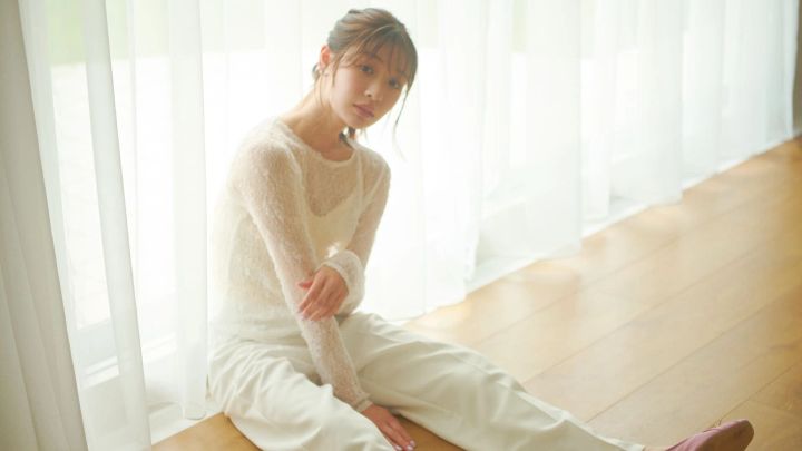 飾りけのない白で清楚さもありながら、服の中を想像させる透けトップスが◎。