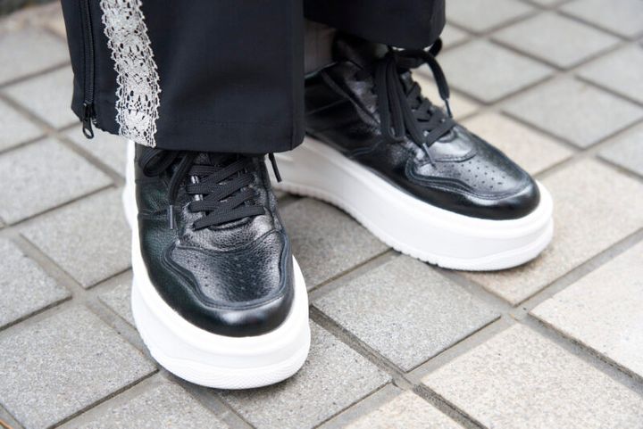 黒ボディ×白ソールのスニーカーで、スタンバイOK!