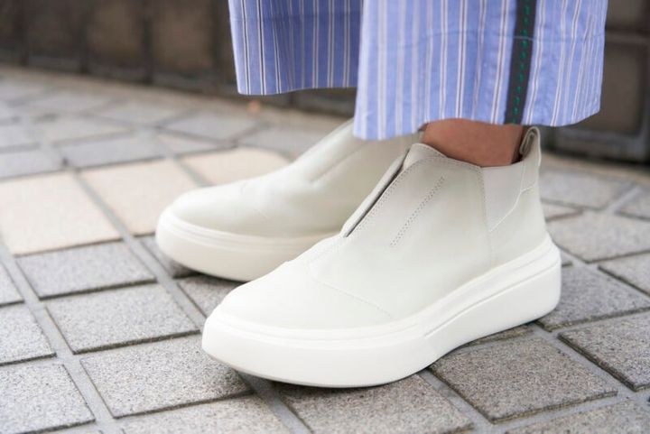 オフホワイトのスニーカーで抜け感を