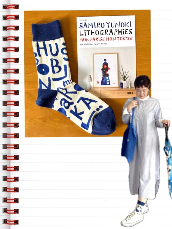 イデーの靴下は、染色工芸家の柚木沙弥郎さんが生前にイデーとタッグを組んで共同制作したグッズのひとつ。イデーでは今その作品やグッズが展示販売されています。以前から憧れの柚木沙弥郎さんのモチーフを身に着けて楽しむことができ、とても嬉しいです。