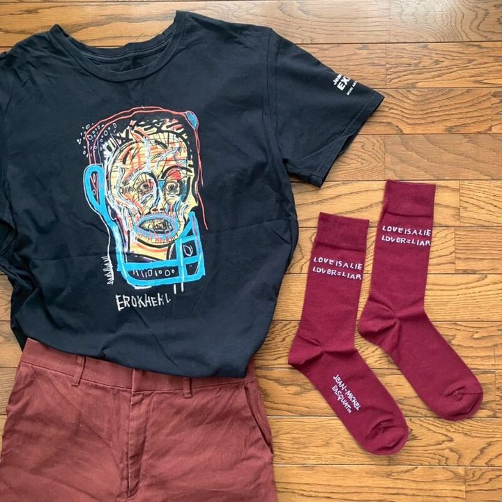 ー以前訪れたバスキア展のグッズTシャツに、バスキアのUTソックスを合わせて。