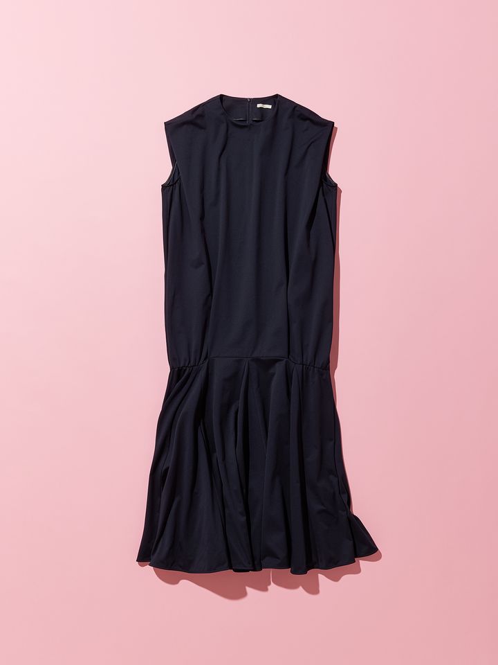 女性の体を美しく魅せるのが得意なブランドだからこその、細部まで計算されたボディラインを素敵に魅せてくれるワンピース。二の腕を露呈しすぎない袖口のデザインや裾から広がるシルエットで脚も細見えに。下に切り替えがあることで、可愛さよりも大人のエレガントさが引き立ち、大袈裟すぎない大人の華やかさが演出できるのも魅力です。ジャケットを肩掛けにすればお仕事シーンでも使える知的なワンピース。黒ワンピを1枚買うなら、こんなワンピが活躍しそうです。 ワンピース¥56,100(ル フィル/LE PHIL NEWoMan新宿店)