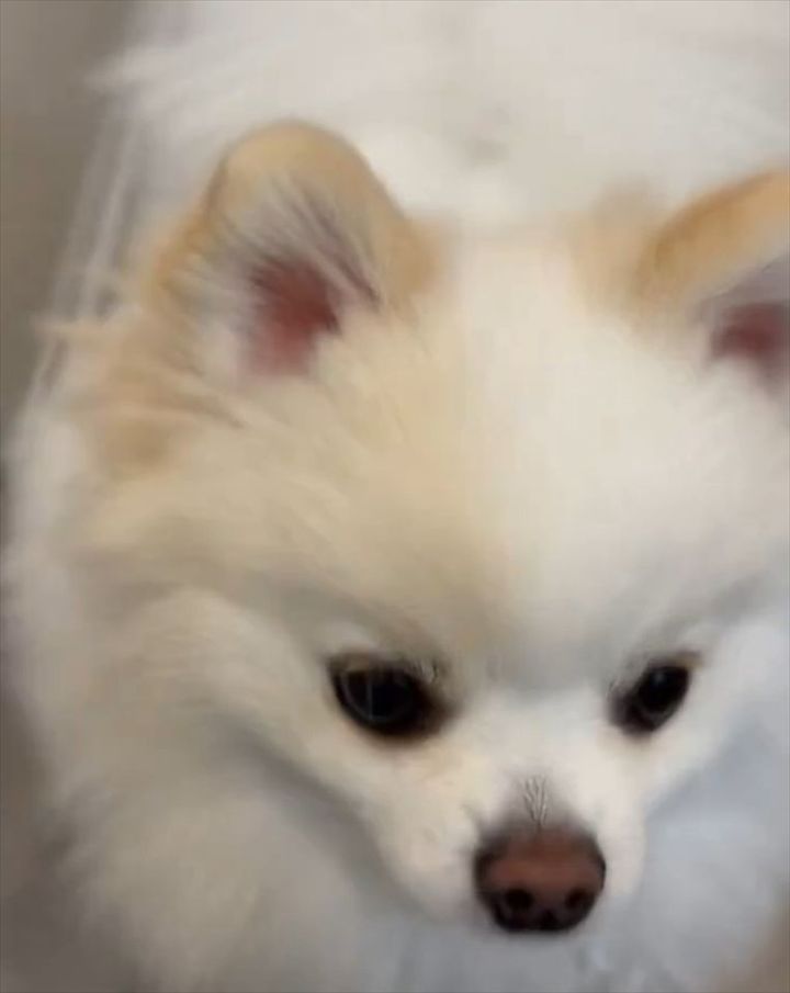 カメラを向けた先にいるのは、ポメラニアン『天』くん。 カメラを向けた当初は下を向いていましたが・・・