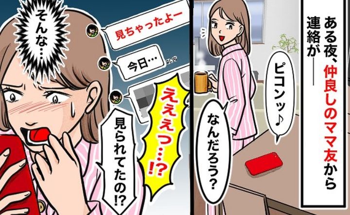 家族以外の誰にも見られていないことを確信していたのに……。ママ友から「見ちゃったよ」と連絡があり、私はドキッとしてしまいました。ママ友に見られてしまったこととは……。