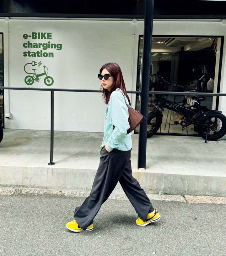 ナイキの中で最も歴史のあるコルテッツは、色展開が豊富でコロンとした形がお気に入り。ライトグリーン×イエローで春らしく。