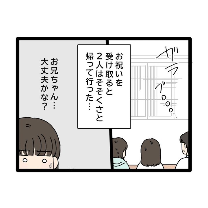 お祝いを受け取ると、そそくさと帰って行った2人・・。やっぱり「お兄ちゃん・・大丈夫かな?」と不安がぬぐい切れませんでした。