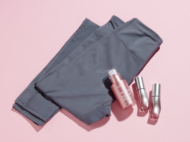 <写真左>最近、毎日のようにヨガやジムなど体を動かすことが多く、レギンスは必需品。ATSUGI のレギンスは、40 代のポッコリお腹が響きにくくスタイルよく見せてくれるのが◎ホットヨガなどで、上に T シャツを着たくないときなどに穿いています!
