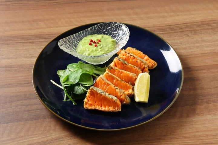 同じく新作の「サーモンのレアカツ 抹茶タルタルソース添え」(1,300円)は、てん茶とおからの衣をつけて揚げたレアカツに、抹茶とワサビを合わせた爽やかな風味のタルタルソースがよく合います。そのほか、“抹茶チーズ”をたっぷり使用した「スモークサーモンと生ハムの抹茶シーザーサラダ」(1,100円)や、抹茶またはほうじ茶のどちらかを選べる「ポテトフライお茶フレーバー 抹茶・ほうじ茶」(580円)など、毎年人気のメニューも揃います。日本茶レストランならではの “お茶まみ(おつまみ)”で、抹茶ビアガーデンを盛り上げます。