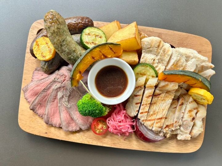 “お茶でアレンジした肉料理4種”とグリル野菜を盛り付けた贅沢プレートが登場!