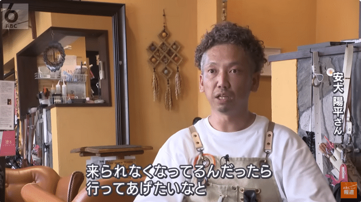 美容師歴27年の安大さん。訪問美容を始めたきっかけは、馴染みの客が高齢になり、来店できなくなったこと。「来られなくなってるんだったら行ってあげたい」と“移動美容室”を始めたという。