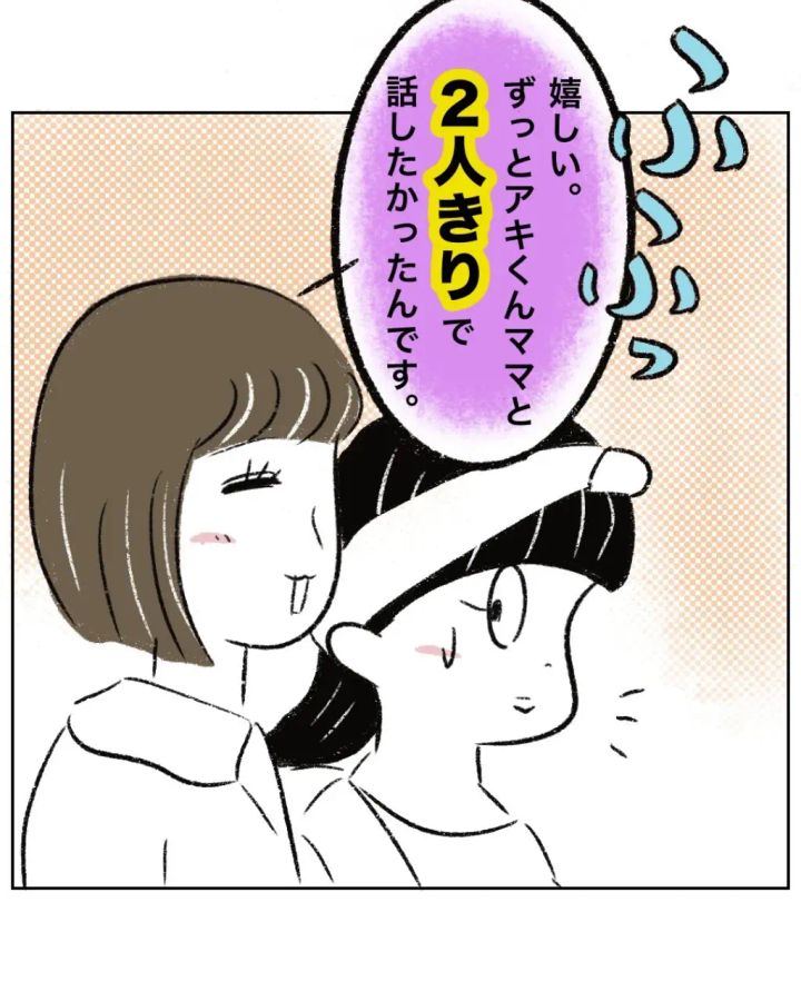 「ふふっ。嬉しい。ずっとアキくんママと2人きりで話したかったんです」と言われ、