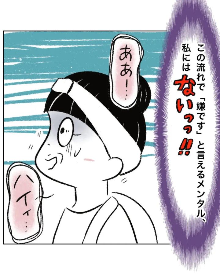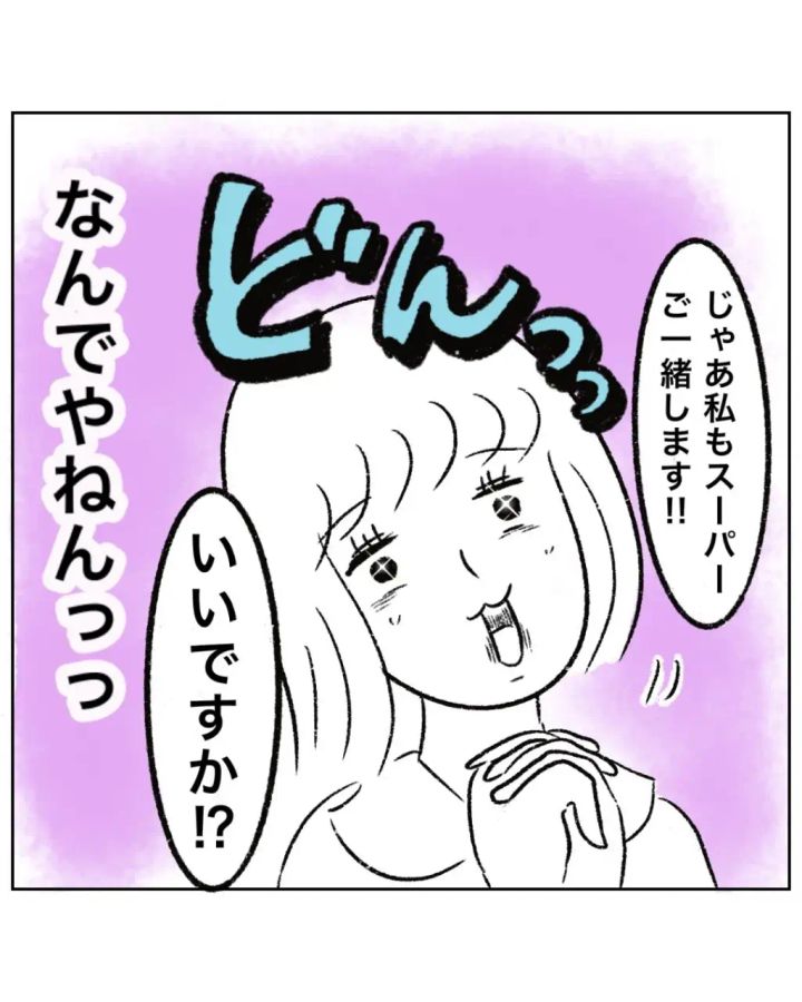 さらに、「この流れで『嫌です』と言えるメンタル、私にはないっっ!!」と心の中で思ったまるさんは、「ああー・・ハイィ・・」と断れず、ゆかちゃんままと一緒にスーパーに行くことになってしまいました。