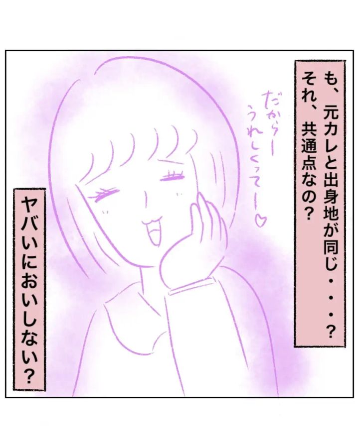 「え・・も、元カレと出身地が同じ・・?それ、共通点なの?ヤバいにおいしない?」とまるさんはどんどんイヤな予感がしてきたのでした。