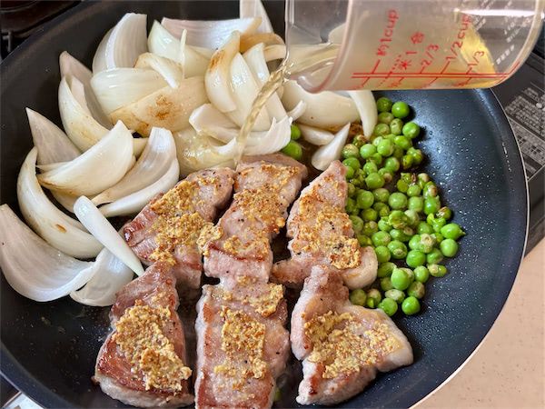 3. 【ワンパンでメインと副菜】爆誕!粒マスタード大活躍な「豚肉と新玉ねぎのマスタード煮の作り方」に挑戦!