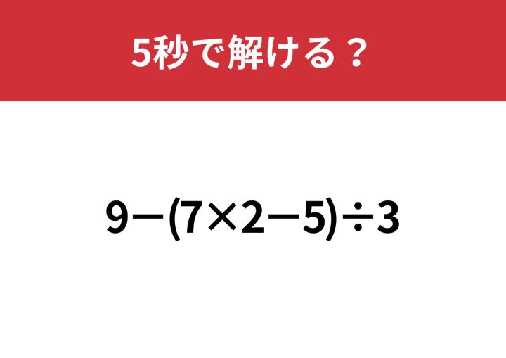 3. 大人なら解けないと恥ずかしいかも?「9−(7×2−5)÷3」5秒で解ける?