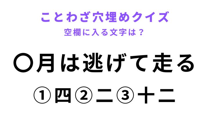 「◯月は逃げて走る」の空欄に文字を入れると、あることわざが完成します。
