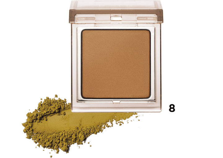 「アイシャドウをアクセントカラーにチェンジ。単色で使えばそんなに難しくないはず。キレイに塗るというより、アイシャドウをとった指の腹で、まぶた全体を1往復するくらいでOK」インフィニシェイド シングル アイシャドウ(レフィル)04 シティー スパイス ¥2,530 ※別売り カスタムケース ¥550(共にRMK Division)