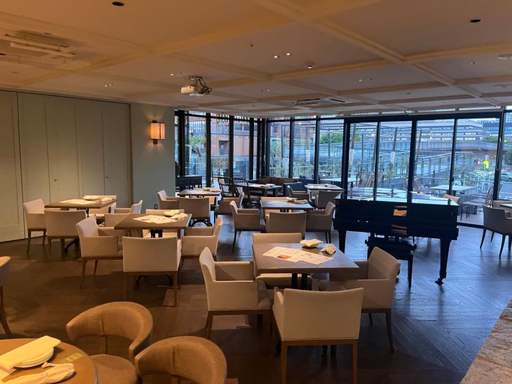広くて開放的な店内、中央には大きなピアノが置いてありました。