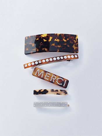 〈上から〉べっ甲ワイドバレッタ 6,600円、パールつきバレッタ 8,250円/ともにIRIS47(フーブス) ロゴバレッタ 3,960円/イエナ(メゾン イエナ) ミニヘアピン(2本セット) 2,200円/ル デコレ(ル タロン 公式オンラインストア)