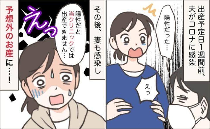 近くのクリニックで無痛分娩を予定していた私。出産予定日の1週間前に夫が新型コロナウイルスに感染してしまい、クリニックから遠い県外の実家に避難することもできず、隔離生活をすることに。その後、夫の隔離解除の日の夜中に破水し、病院に行ったところ、私も新型コロナ陽性になっていました。