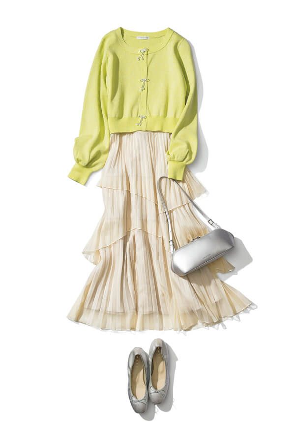 カーディガン¥9,900/WILLSELECTION(WILLSELECTION ルミネ有楽町店) スカート¥14,300/dazzlin バッグ¥17,600/アドカラム(アンソロジー) 靴¥12,100/WASH(銀座ワシントン銀座本店)