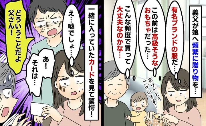 義父が娘に高級そうな贈り物「こんなに買って大丈夫?」袋から手書きカードがポロリ…夫が激怒!なぜ?
