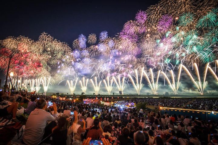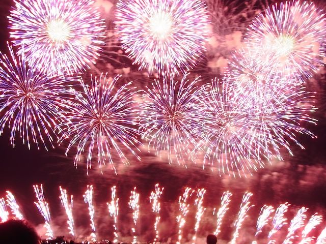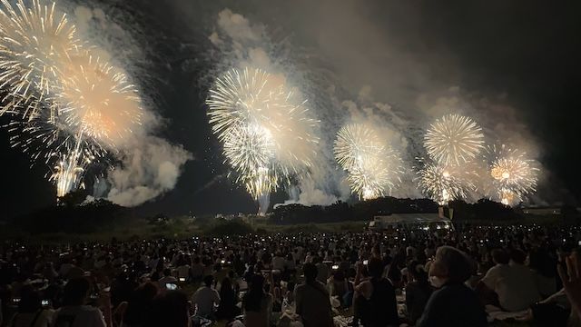 打ち上げられる花火の数は2日間で約2万発。音楽とのシンクロや、信濃川の両岸から打ち上がるスケール感から、まさに“人生で一度は見たい花火”と呼ばれます。長岡空襲が8月1日に発生したため、毎年8月2日、3日に開催。8月1日の空襲が始まった時刻には、白一色の花火「白菊」が打ち上げられ、慰霊の鐘も鳴らされます。